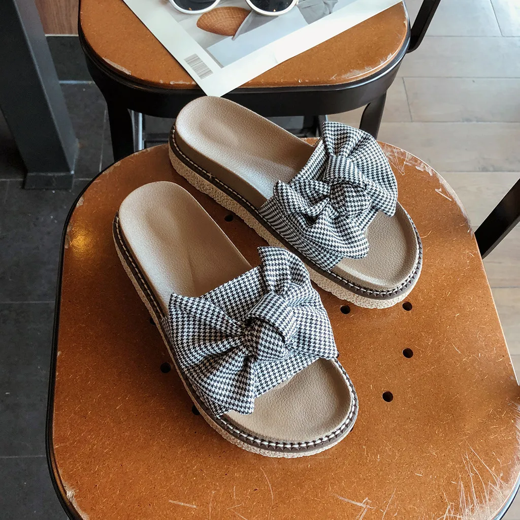 Женские сандалии на плоской подошве с бантом; пляжная обувь