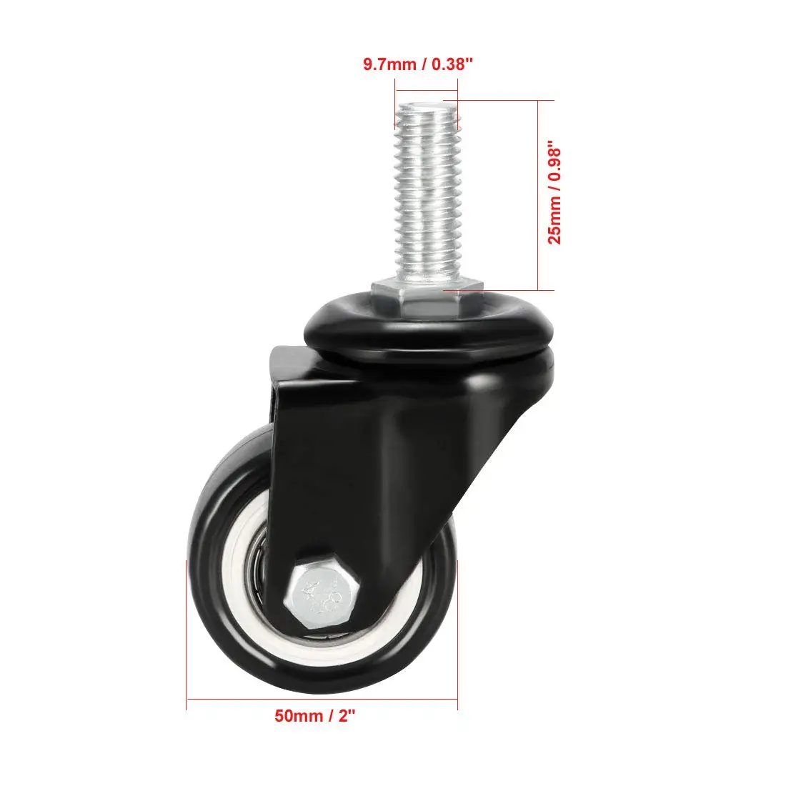 Характеристики продукта: Цвет: черный Материал: полиуретан и металл 1,5 "резьбовые поперечная: 8 мм/0,318" 2 "резьбовой диаметр: 10 мм/0,4" Длина резьбы: 25 мм/1" 1,5 "колеса Диаметр: 40 мм/1,5" 2 "Диаметр колеса: 50 мм/2" Колесо Ширина: 20 мм/0,8" Ёмкость фунтов: 200lbs (1,5 ") Объем фунтов: 300 фунтов (2 ") Характеристики: с поворотным замком Посылка включает в себя: 4 x роликовые ролики