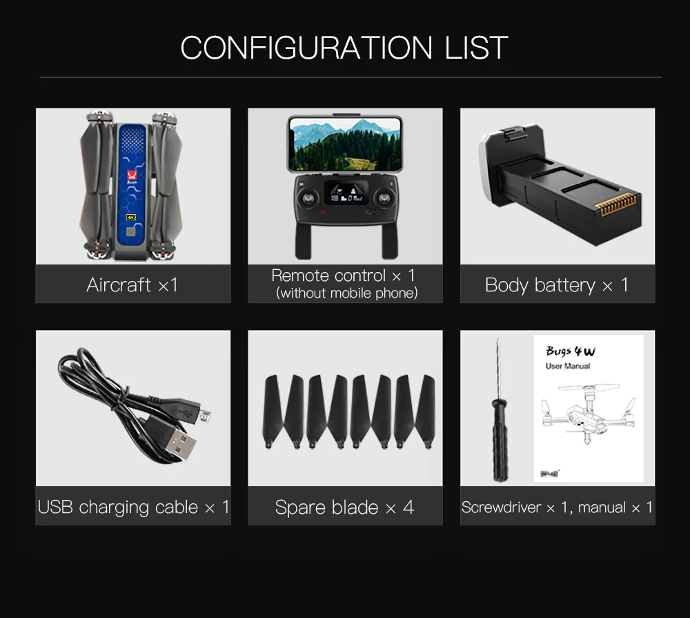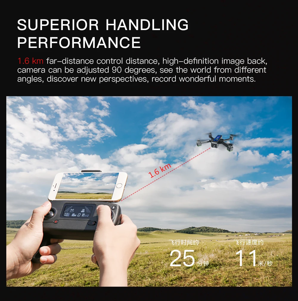 Особенности: 1. Оптическое позиционирование потока: встроенный оптический датчик потока, который получает информацию о оптическом потоке в реальном времени и делает интегрированные вычисления. 2. Ультразвуковой: ультразвуковой датчик помогает барометру держать супер стабильную высоту. 3. 5G Wi-Fi 4K HD камера: широкоугольный объектив, состоящий из нескольких элементов оптических линз, позволяет камере запечатлеть четкое и яркое изображение с широким фоном 4. Следуйте за мной режим: камера дрона будет блокироваться на ваш мобильный телефон при использовании этой функции. 5. 4-в-1 отзывчивый Esc: Инновационная 4-в-1 электронный регулятор скорости делает гоночный самолет более гибким и более размещения заказа на изготовление и разработку изделия внезапные маневры в том числе sharp повороты и сложно сломать. 6. Мощный бесщеточный двигатель: бесщеточный двигатель MT2204 1350KV, самый недорогой бесщеточный мотор среди бесщеточных моторных линий. Максимальный подъем вверх 230 г. 7. Безголовый режим делает полет намного простым. Функции: Вверх/вниз, вперед/назад, поворот влево/вправо, боковой полет, позиционирование GPS, Безголовый режим, возврат одной кнопки, следуйте за мной Посылка включает в себя: 1 х Квадрокоптер с дистанционным управлением 1 х пульт дистанционного управления 1X7,6 V 3400 мА/ч, Батарея 1 X Зарядное устройство USB кабель (1 шт.); 4 X пропеллер 1 х Отвертка