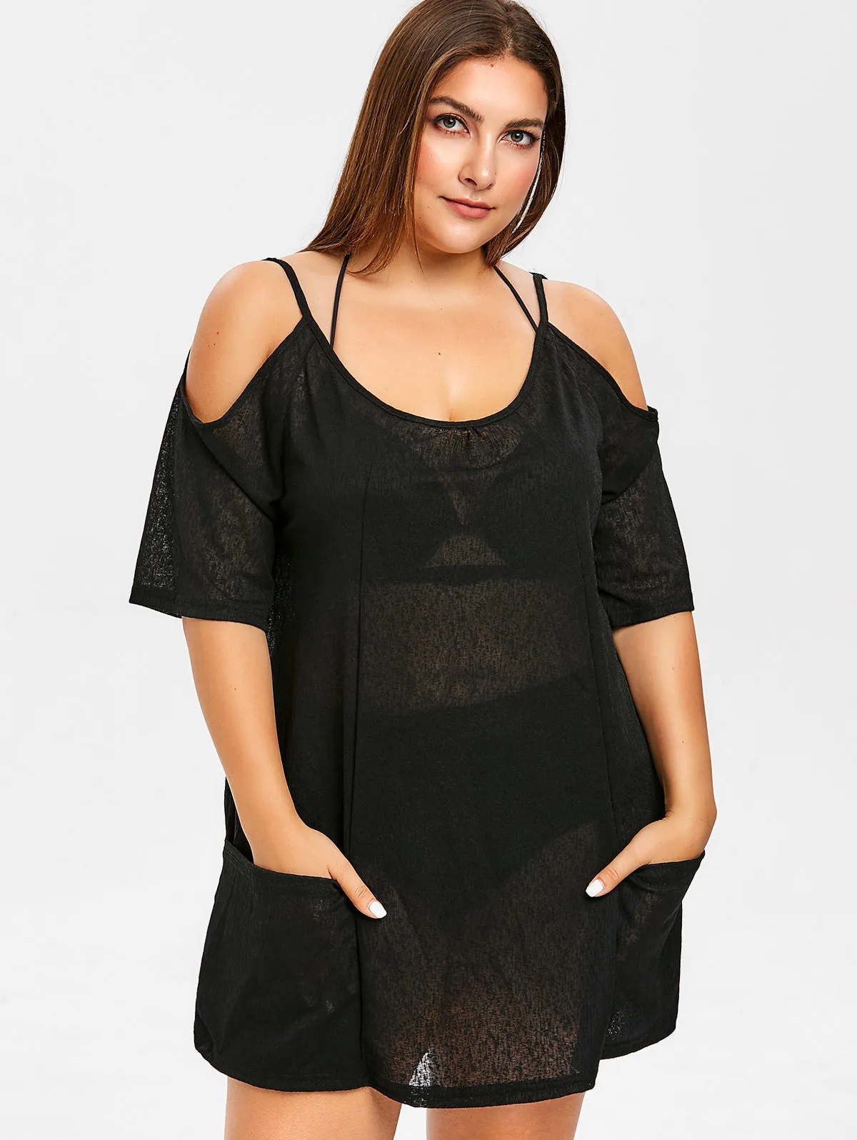 Женское прозрачное пляжное платье Wipalo, летнее однотонное платье с карманами спереди и открытыми плечами для отдыха, большие размеры