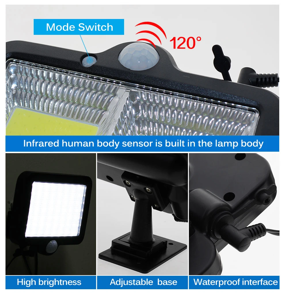 Светодиодный уличный фонарь на солнечной энергии с датчиком движения PIR, настенный светильник, наружный прожектор для дома, сада, парка, аварийные солнечные огни