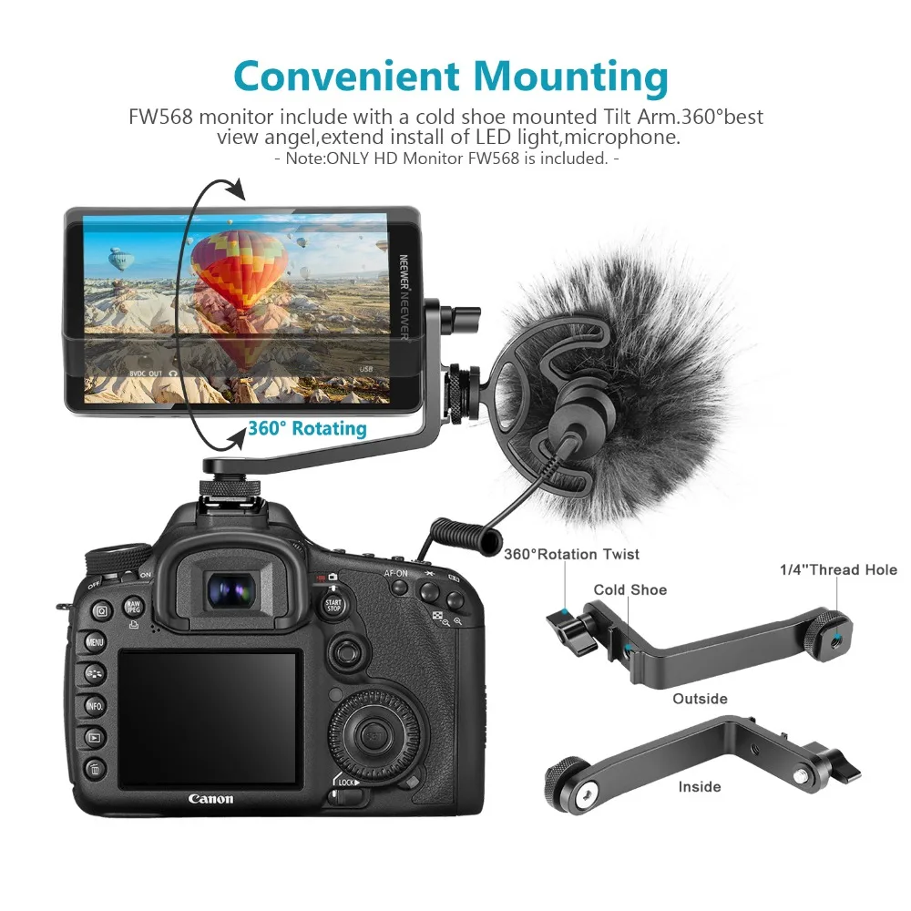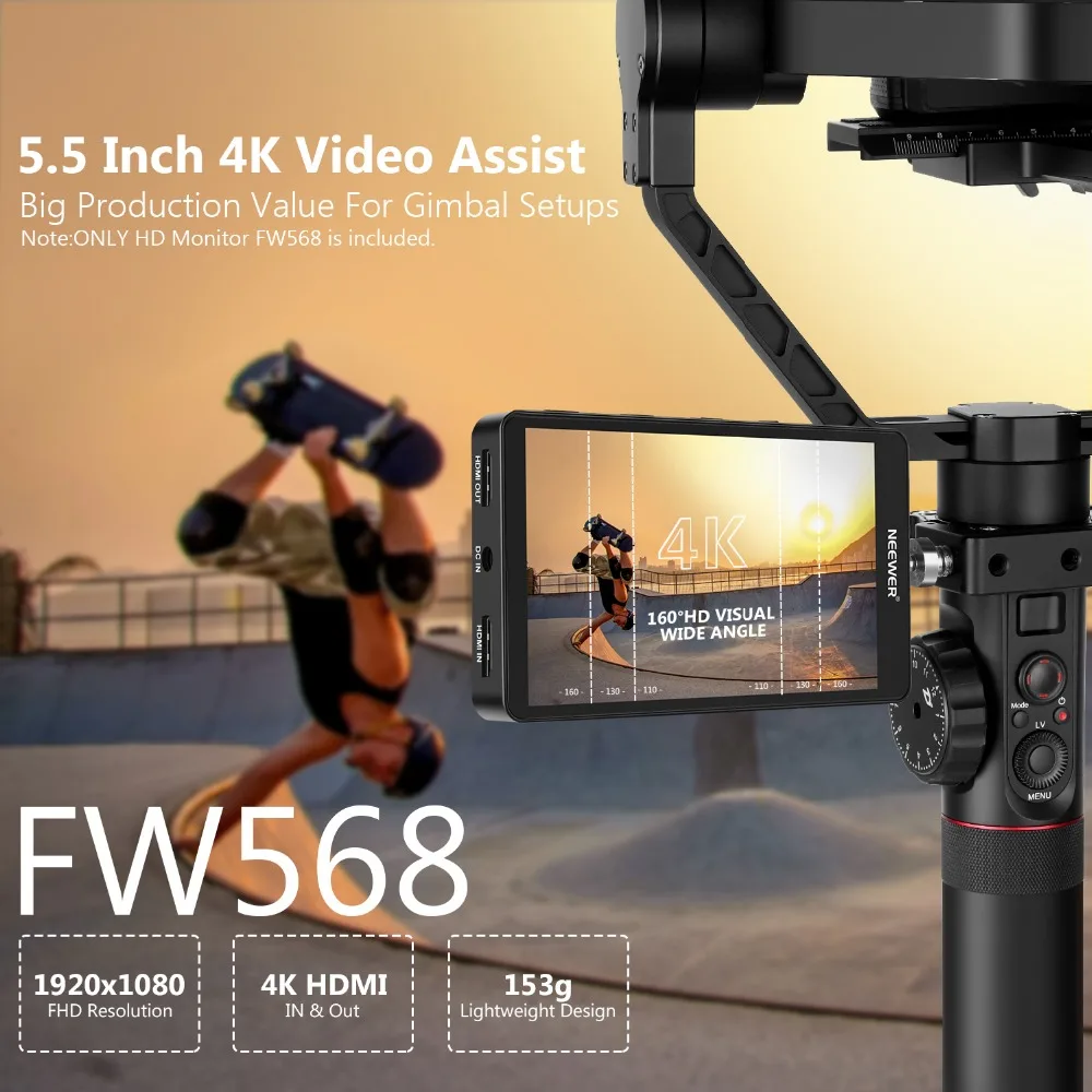 Мини Портативный: портативный F568 4K DSLR монитор весит всего 175 г; Угол обзора 160 градусов позволяет четко видеть изображение, даже если он движется