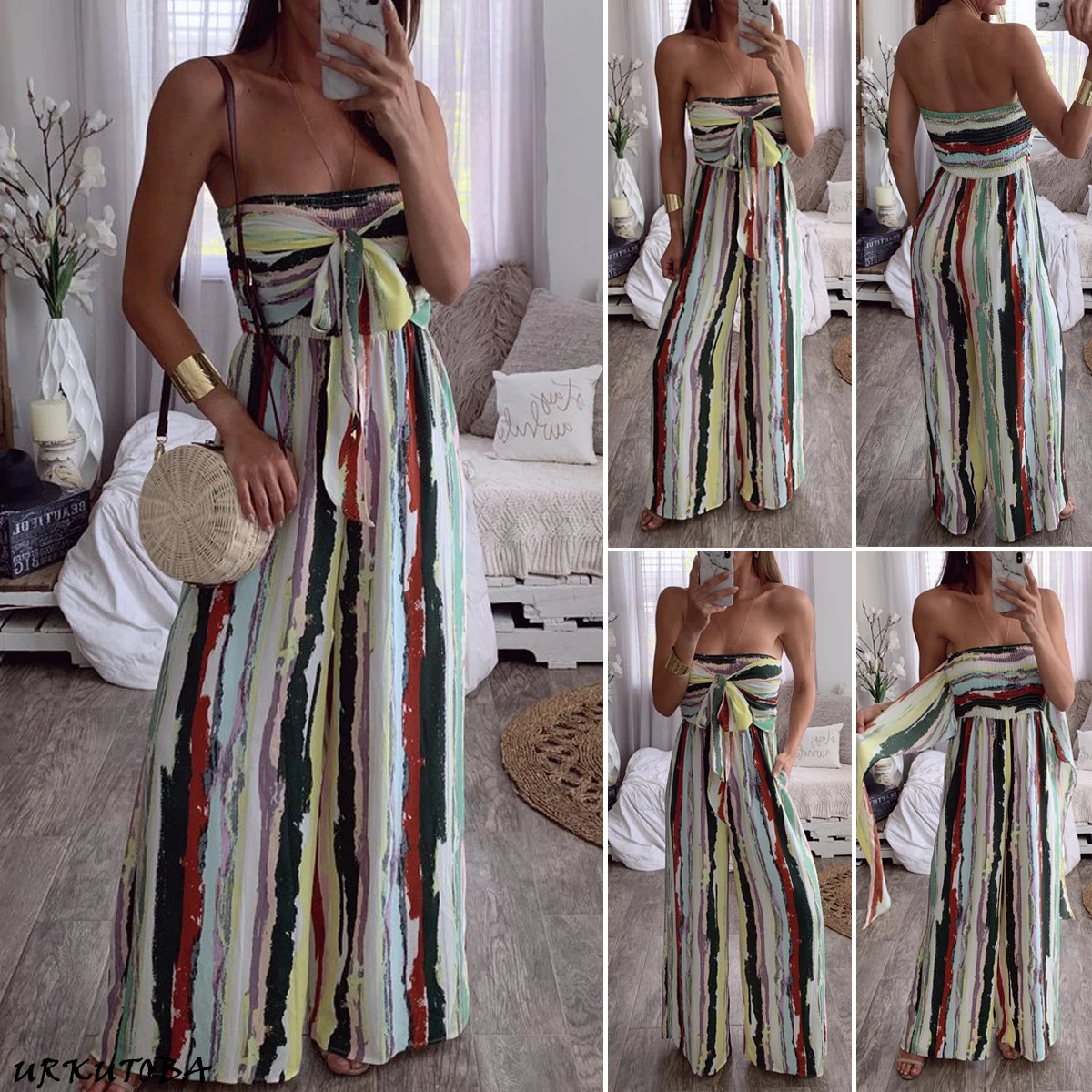 Здравствуйте! Добро пожаловать в наш магазин! Высокое качество и абсолютно новый 100% Основной цвет: как на картинке Новинка в моде Материал: полиэстерПосылкаВ комплекте:1xМодный женщиный комбинезон Размеры диаграммы: