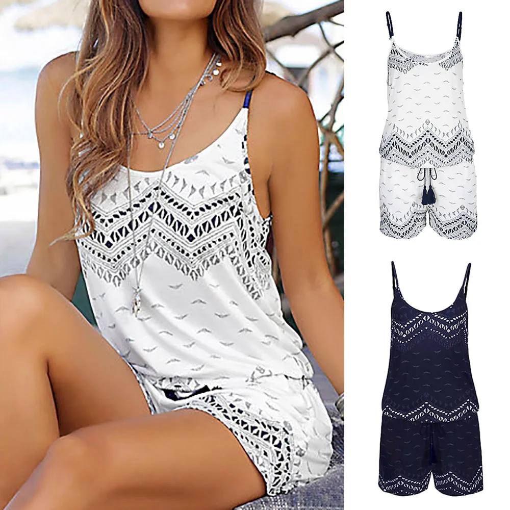 Летний женский пляжный комбинезон без рукавов с принтом Женские шлепанцы для пляжа, детский комбинезон, брюки