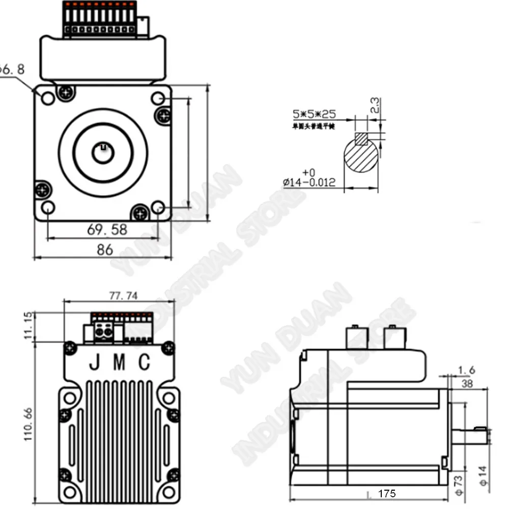 Диаметр выходного вала:14 мм(5 мм ключ)