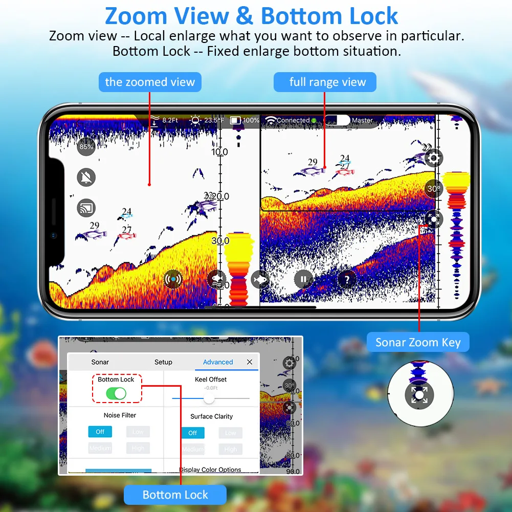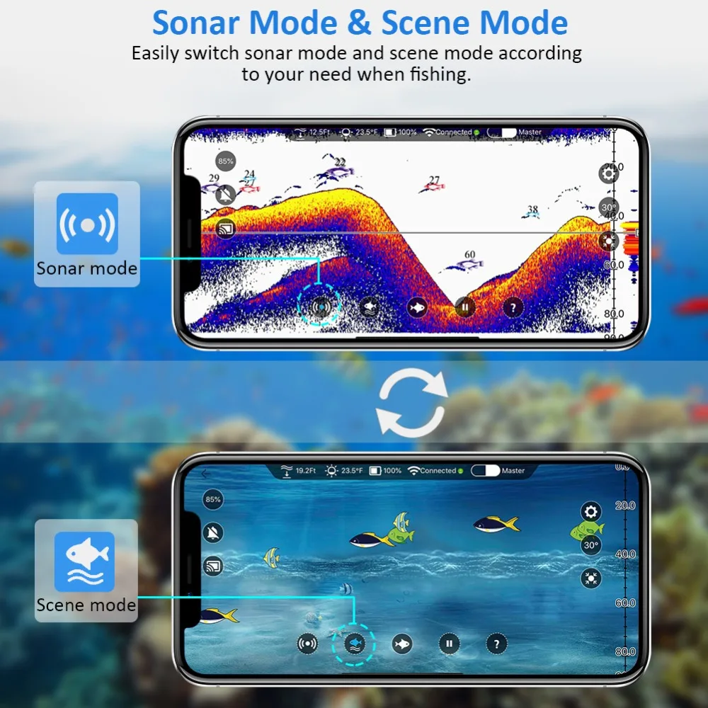 Легко переключать режим сонара и режим сцены в соответствии с вашими потребностями во время рыбалки
