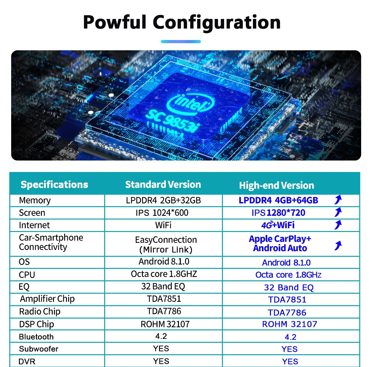 Две версии для выбора-стандартная версия 2 + 32 ГБ и Высококачественная версия 4 + 64 Гб. У нас есть не только основная функция GPS, радио и Bluetooth, но и больше развлекательных функций, таких как просмотр видео на Youtube онлайн/офлайн, бесплатный помощник Google и общение с друзьями через Facebook.