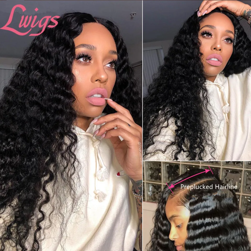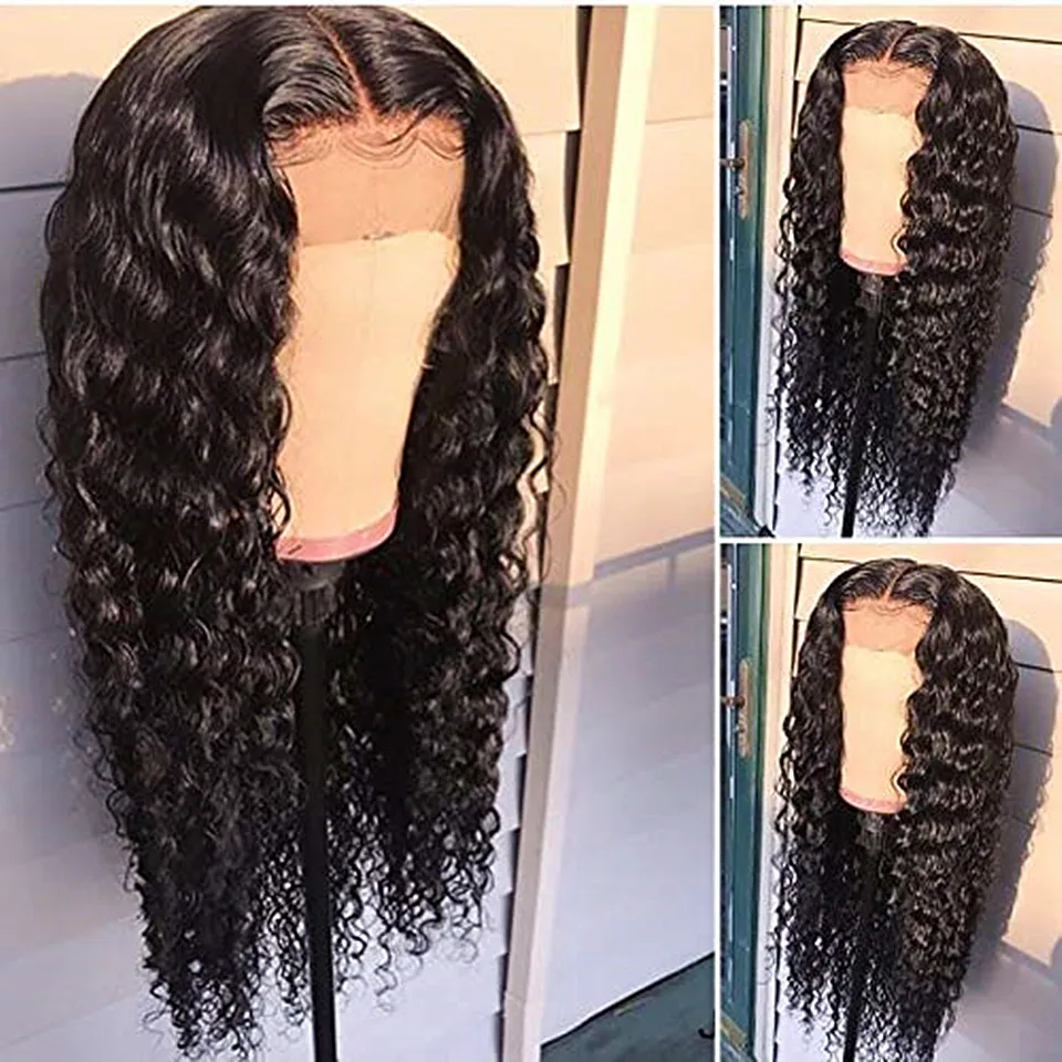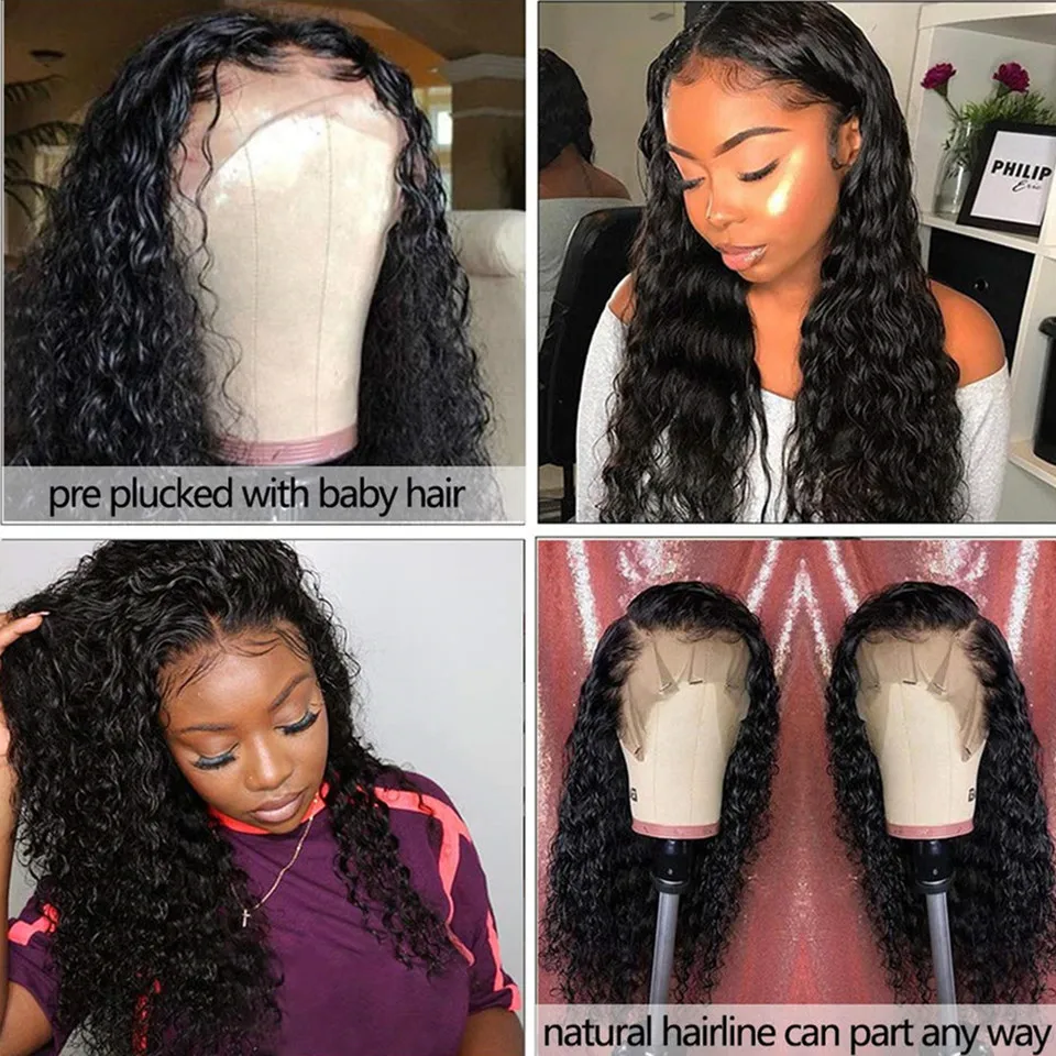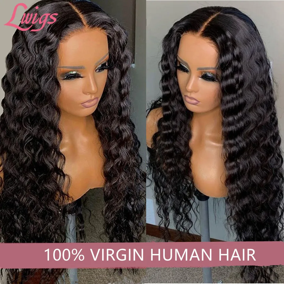 Парик с глубоким волнистым кружевом, парик из человеческих волос, бразильский парик с волнистыми волнами, полный парик с кружевом, дешево, 4x4, парик с кружевом Clsoure для черных женщин