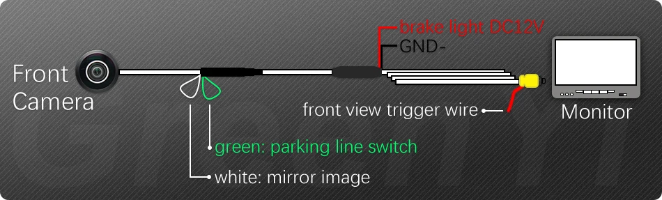 5) 6 м видео кабель подключения монитора, кабель питания подключения автомобиля тормозной источник питания, brakeing, система мониторинга автоматически начинает работать, вы можете четко видеть автомобиль передней ситуации.