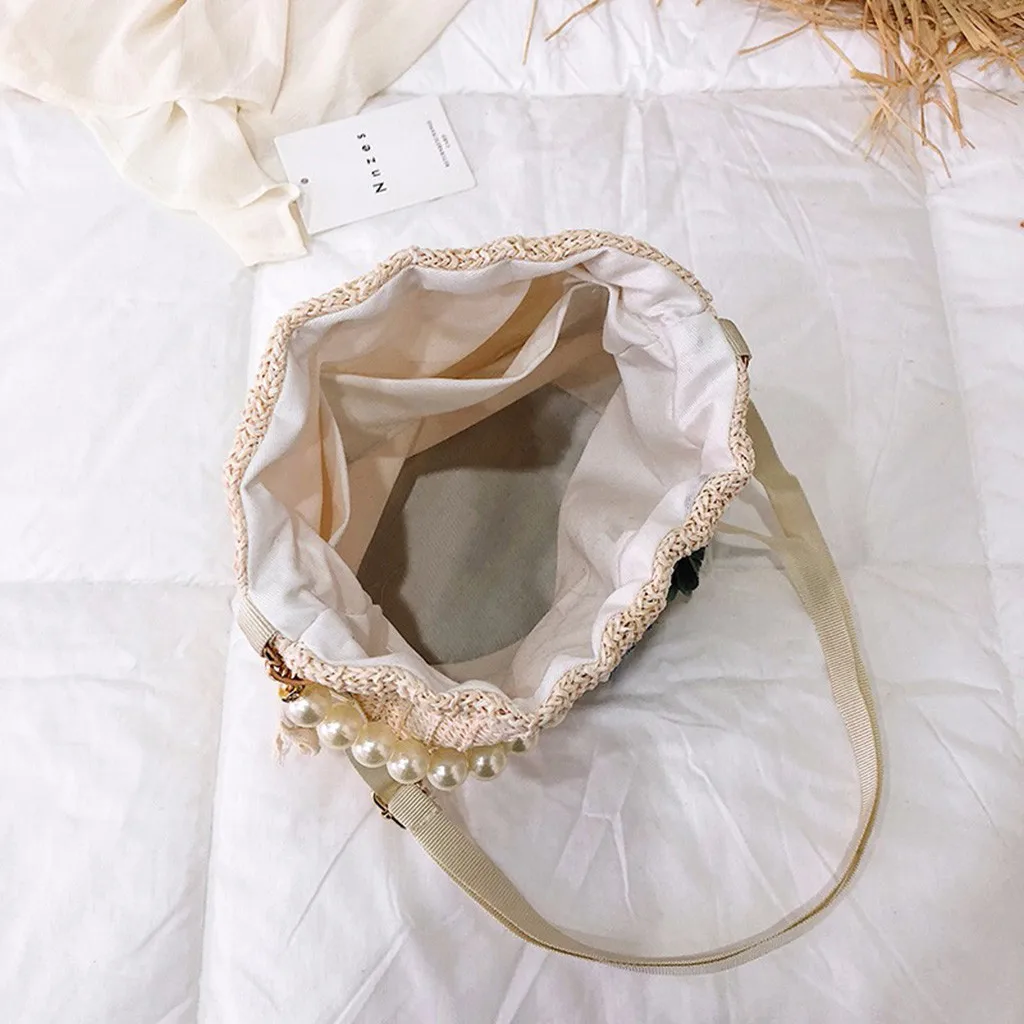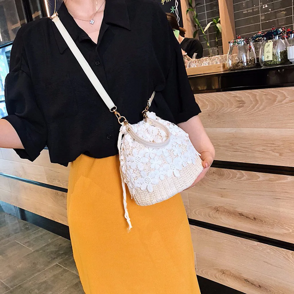 Женская пляжная Соломенная Сумка-ведро с цветком, квадратная сумка-мессенджер
