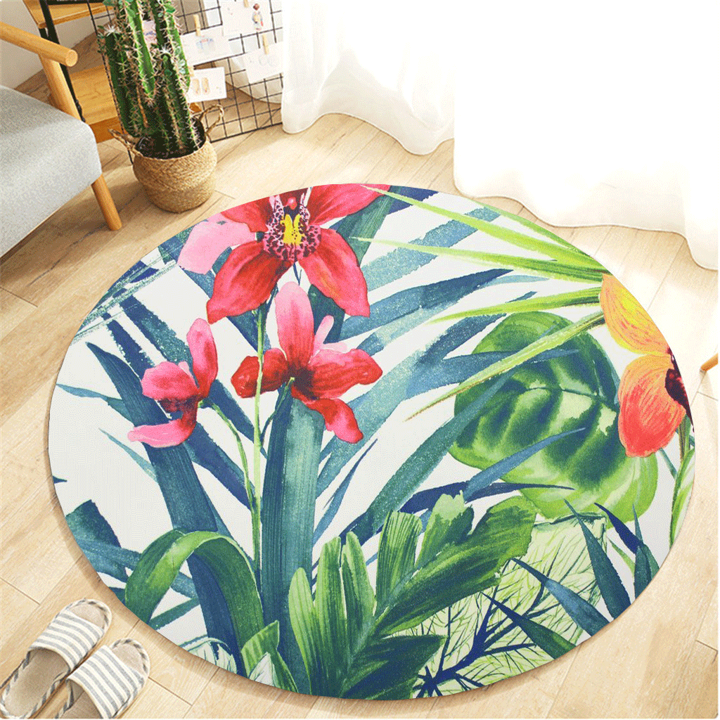 Тропические растения листья узор Круглый фланелевый ванная комната кухня ковер 100 см