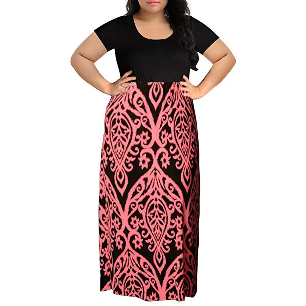 Женское повседневное длинное платье макси с короткими рукавами и принтом шеврон размера плюс на лето