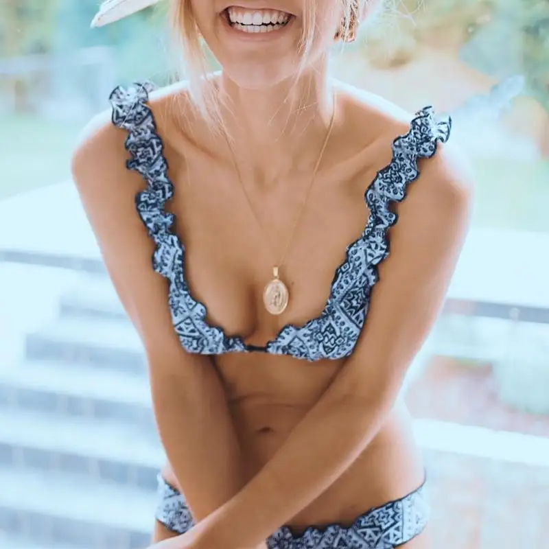 Женский купальник с чашками пуш ап комплект бикини принтом вишни пляжная одежда