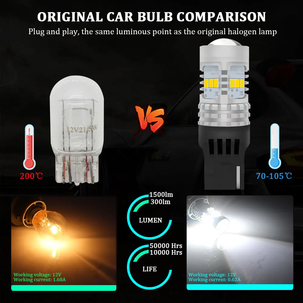 Этот товар подходит для следующих розетки: 7443 7444NA 7440 T20 990 991 992 7443R W21/5 Вт Пожалуйста, убедитесь, что эта базовая модель товара совпадает с вашей оригинальной галогенной лампой.