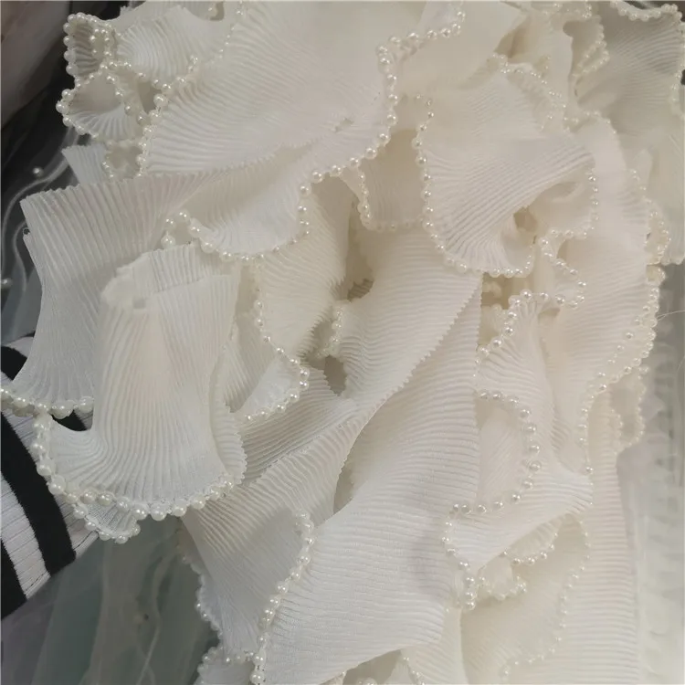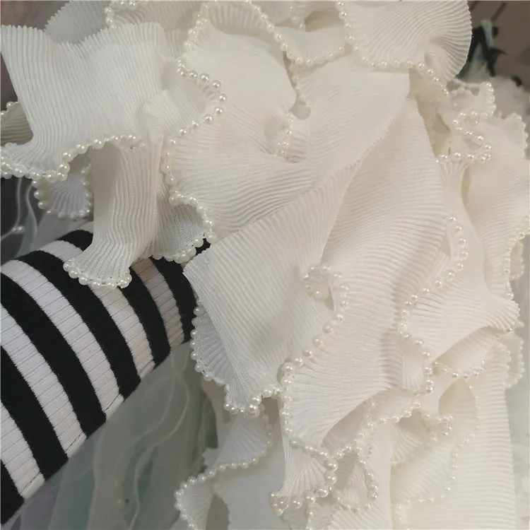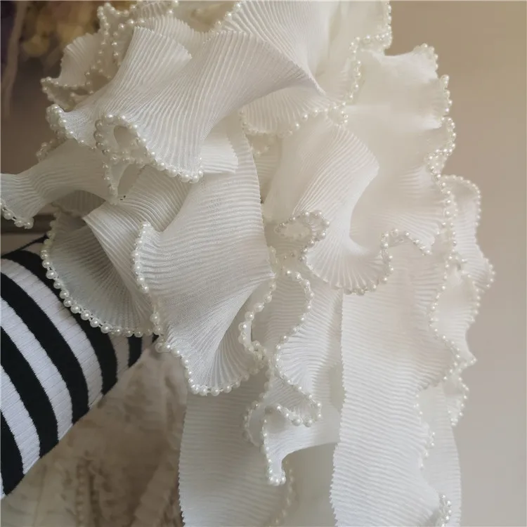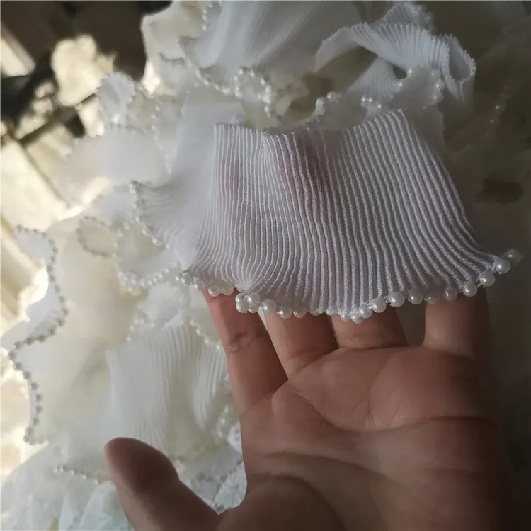 6 см широкая роскошная белая эластичная плиссированная шифоновая расшитая бисером сложенная кружевная лента с оборками отделка платье воротник одежды DIY Швейные аксессуары