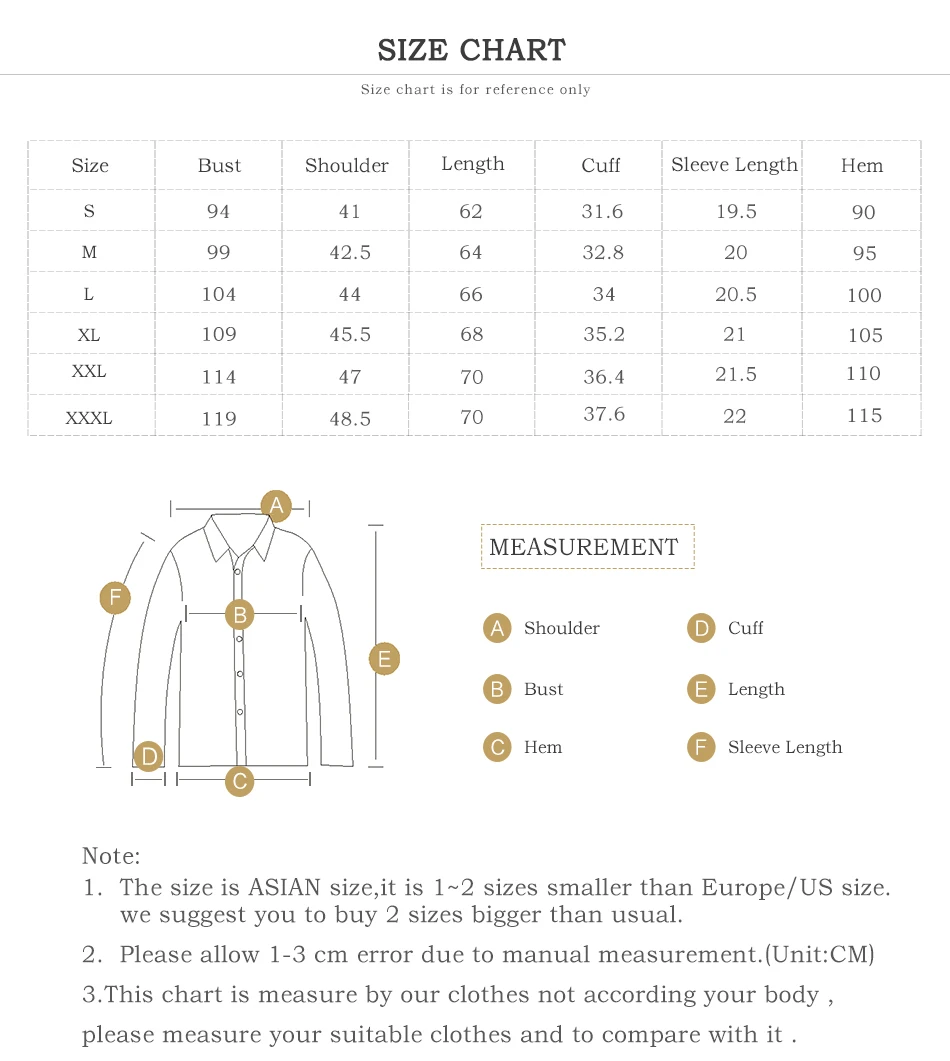 Советы: Это китайский размер, который может быть на 1-2 размера меньше, чем размер вашей страны, Пожалуйста, измерьте подходящие футболки (Не выбирайте размер вашего тела) чтобы сравнить с нашей таблицей размеров, если вы не уверены в размере, пожалуйста, свяжитесь с нами, мы дадим вам несколько советов.