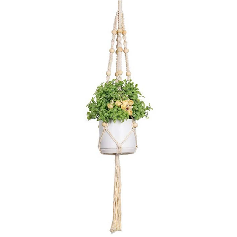 Четыре разных стиля корзин изготовлены из чистого хлопка, могут выдерживать размер маленького цветочного горшка, до футбольного цветочного горшка, покрывающего почти диаметр большинства цветочных горшков. четырехногая подвесная корзина делает ваш цветочный горшок более стабильным в воздухе и не упадет легко