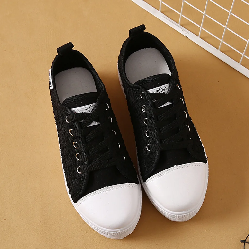 Женская Повседневная дышащая парусиновая обувь на платформе с кружевом; большие размеры