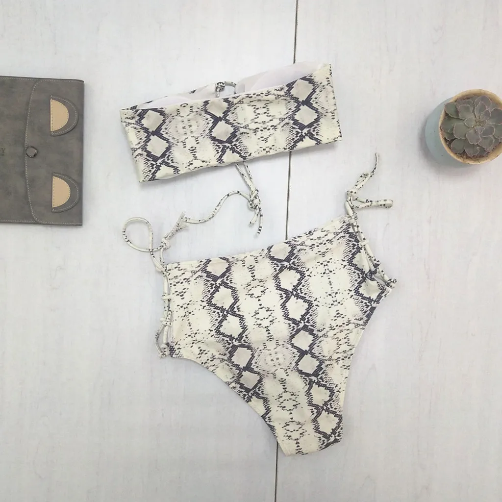 Женский купальник-бикини с принтом под змеиную кожу, Раздельный купальник, пляжный костюм