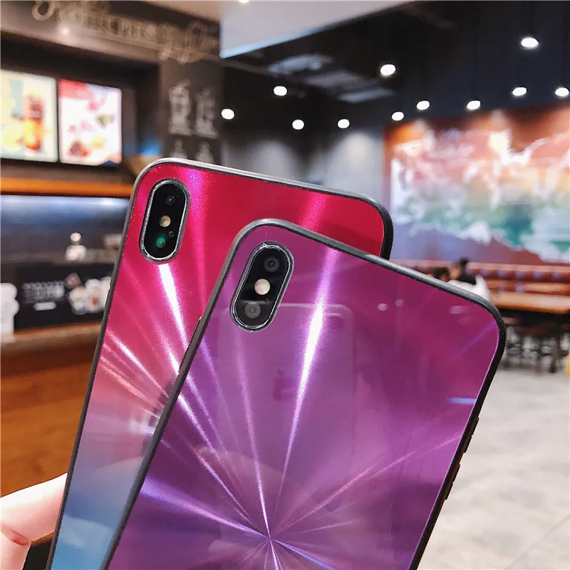 Роскошный чехол-накладка ярких цветов для iPhone X, XS, Max, XR, градиентный Радужный лазерный чехол для телефона, для iPhone 8, 7, 6, 6 S Plus, чехол