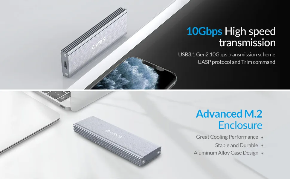 1. Поддерживает интерфейс M.2 SSD размером 2230/2242/2260/2280 мм до 2 ТБ максимум. 2. Корпус для NVME M.2 SSD 10 Гбит/с, корпус для NGFF M.2 SSD 5 Гбит/с. 2. Технология «Plug and play», для ОС Windows/Mac OS/Linux не требуется драйвер и внешнее питание. 4.Прозрачная конструкция из алюминиевого сплава. 5. Поддержка протокола UASP и функции TRIM. 6. Модель NVME с двумя типами кабелей CME A(5 Гбит/с) и cgbps с (10 Гбит/с), модель NGFF с типом кабеля cgbps А (5 Гбит/с). 7. Система быстрого охлаждения — меньше вреда для ssd. 8. Оформление со светодиодным индикатором. 9. Деликатный дизайн: внешний корпус ORICO изготовлен из высококачественного алюминия, сделан компактный и легкий, прочный и удобный. Процесс рисования поверхности придает изделию модную Живучесть, идеально подходит для путешествий.