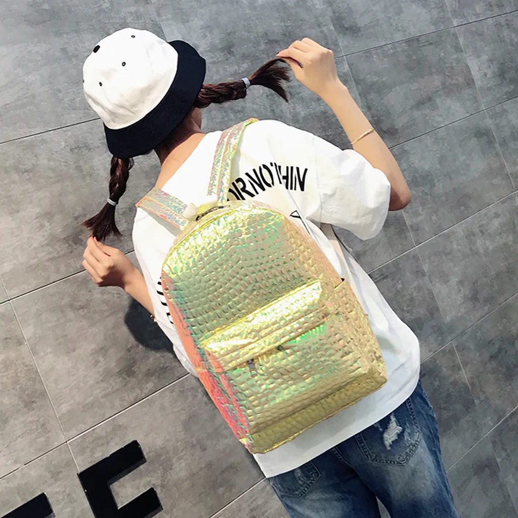 Модная женская Лазерная школьная сумка, рюкзак с каменным узором для девушек, дорожная сумка через плечо