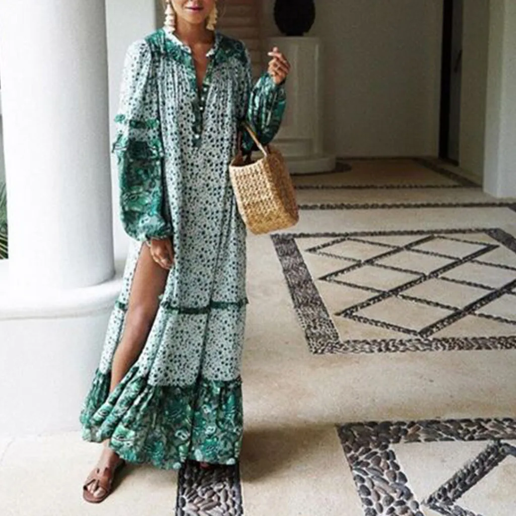 Женское свободное платье с длинным рукавом JAYCOSIN, повседневное Свободное платье с v-образным вырезом и цветочным принтом в стиле бохо, праздничное платье для девочек, 2019