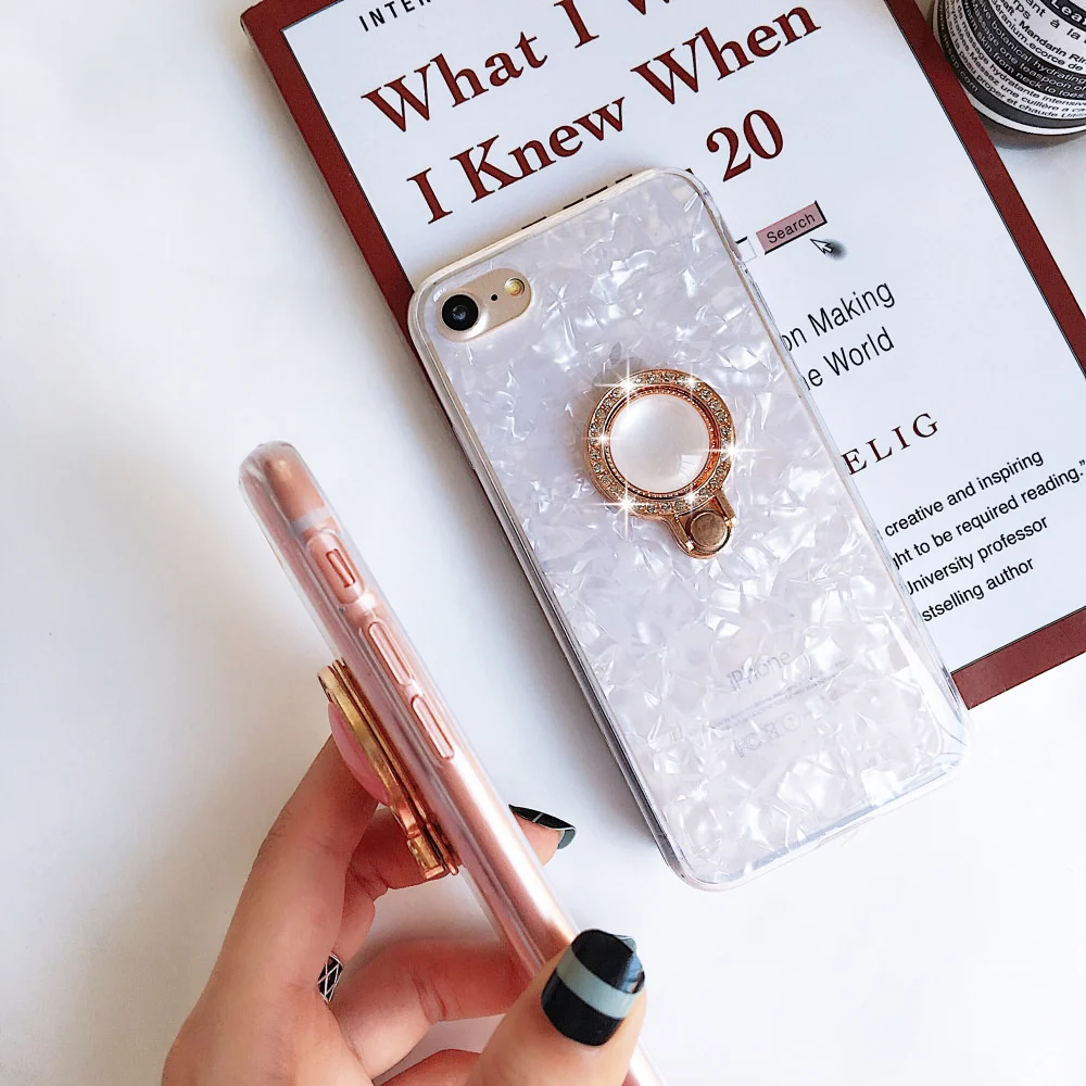 L-FADNUT Diamond Finger Ring Holder Case For iPhone X Xs stylish Bumper For iPhone 6 6S 7 8 Plus Luxury Lovely Shockproof Cover