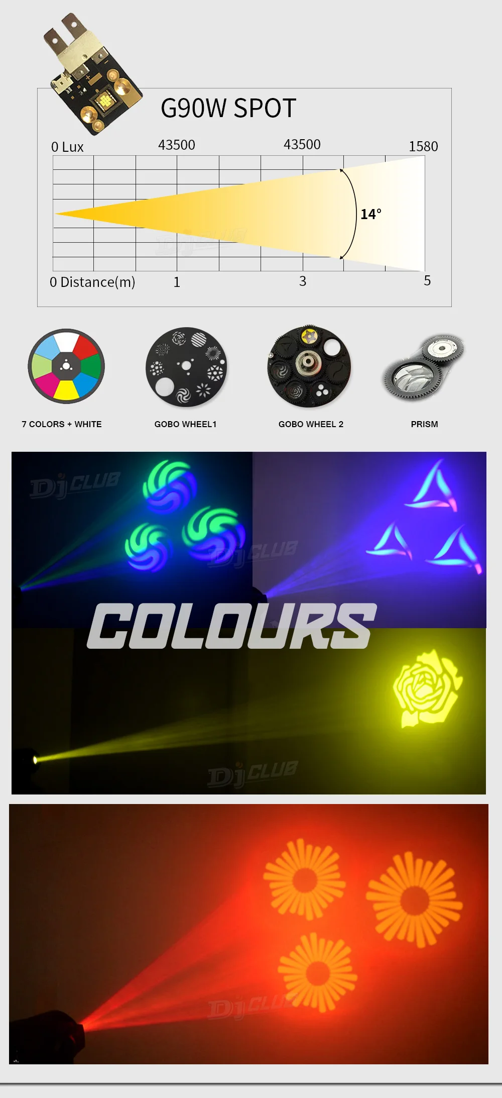 DJCLUB Focus Spot One-светодиодный движущийся светильник мощностью 90 Вт. Кроме того, GOODN установила точку фокусировки с одним вращающимся колесом GOBO с металлическим колесом GOBO и одним цветным колесом, позволяя пользователям создавать уникальные узоры и эффекты в серии ярких оттенков. Фокус Spot One чрезвычайно универсален и имеет все клубы, театры, церкви, концертные постановки и освещение, которые профессионалы ищут в профессиональной светодиодный движущейся головке. Он имеет 16 режимов канала DMX, инверсия панорамирования/наклона, 16-битный тонкий панорамирование/наклон, 3-контактный DMX InOut, разъемы питания In/Out, И 4-кнопочное ЖК-меню DMX с углом обзора 180 градусов.
