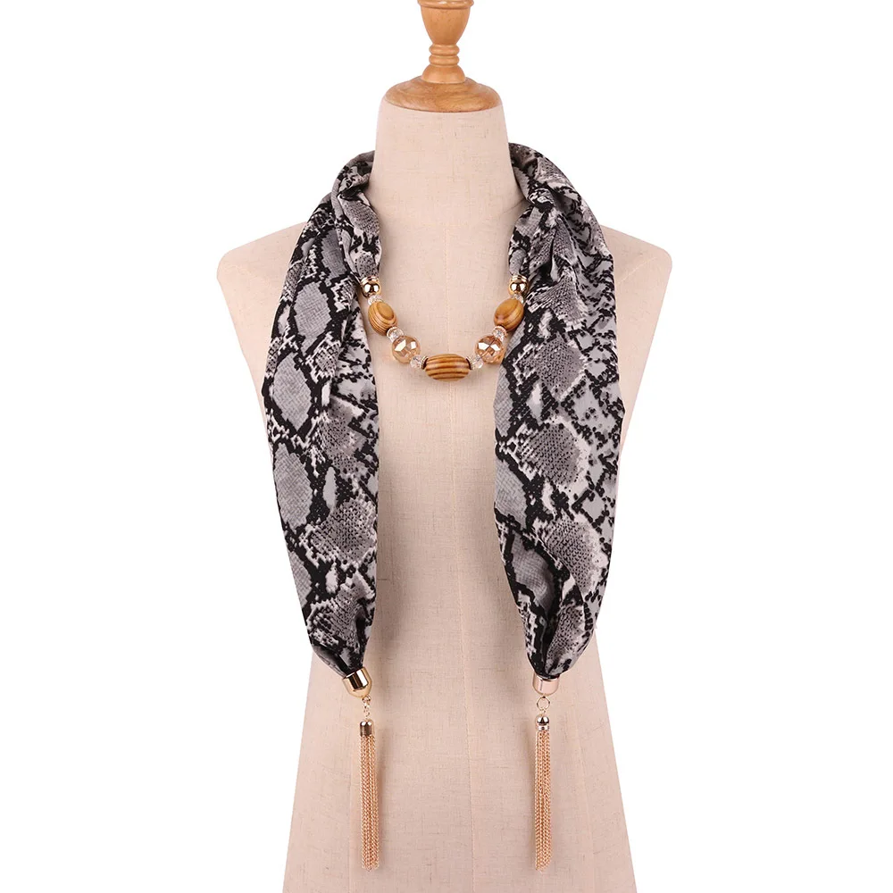 Женский шарф с леопардовым принтом, украшенный бусинами и подвеской, Летний шифоновый шарф, мусульманские шарфы, 2019