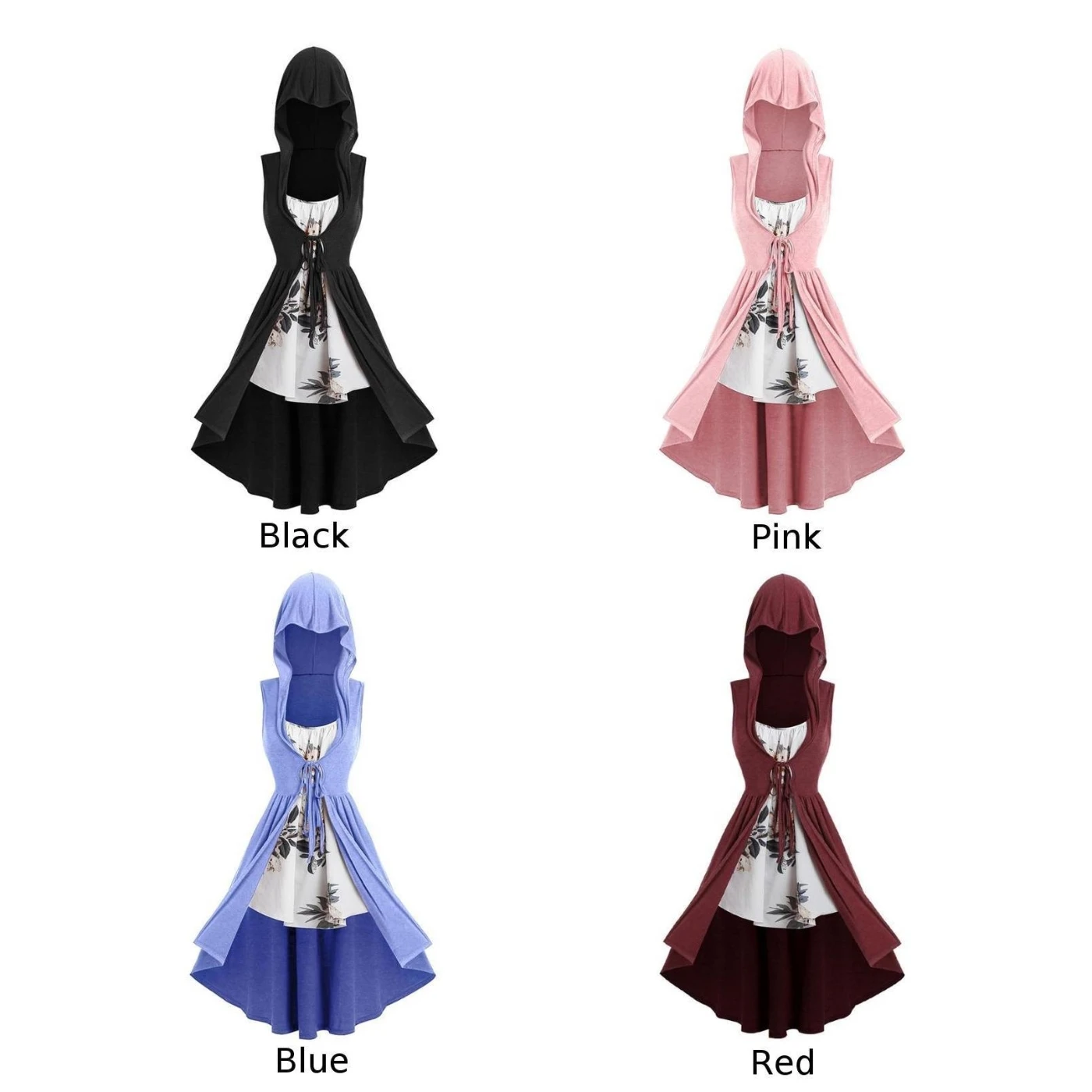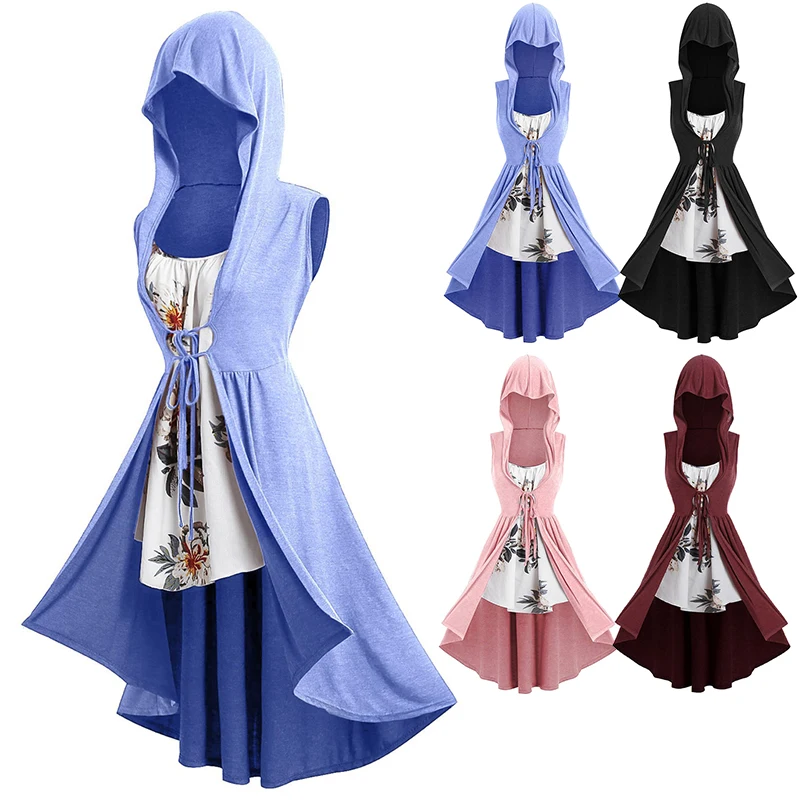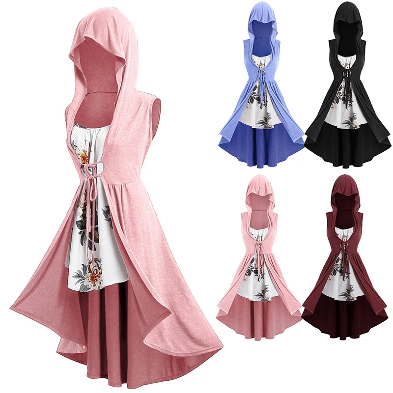 * Описание товара:Повседневный; свободный; Модный; панк; готический; средний; со шляпой; на шнуровке; пальто + платье