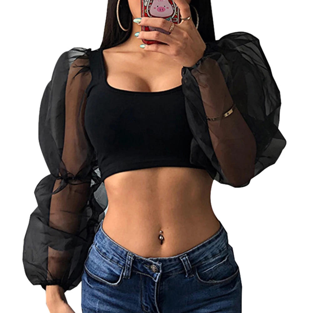 Женский укороченный топ, сетчатая блуза до пупка с длинным рукавом, короткий жилет, Прямая поставка, лето 2019