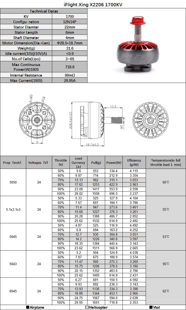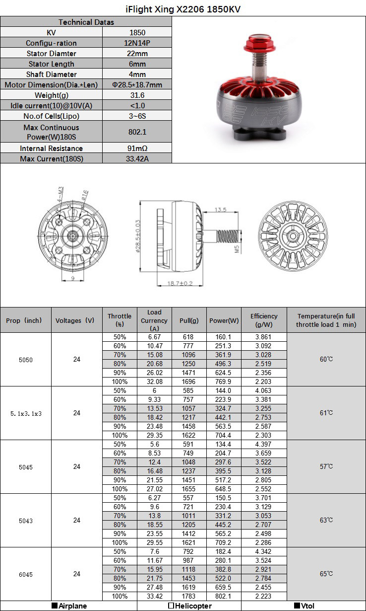 Есть защита от скольжения на контактной поверхности iFlight XING мотор и пропеллеры для увеличения трения и для того, чтобы улучшить прочность; Мульти-рассеивания тепла, дизайн отверстия, помогает тянуть отводит тепло непрерывно; стандартный M3 16 мм * 16 мм Монтажный узор внизу, адаптируется ко всем рамам на рынке; Длина кабеля двигателя 160 мм может удовлетворить различные требования, независимо от того, соединяет ли один или 4 в 1 ESC; Каждый двигатель был динамически сбалансирован, все они прошли самую высокую стандартную процедуру производства и сборки iFlight.