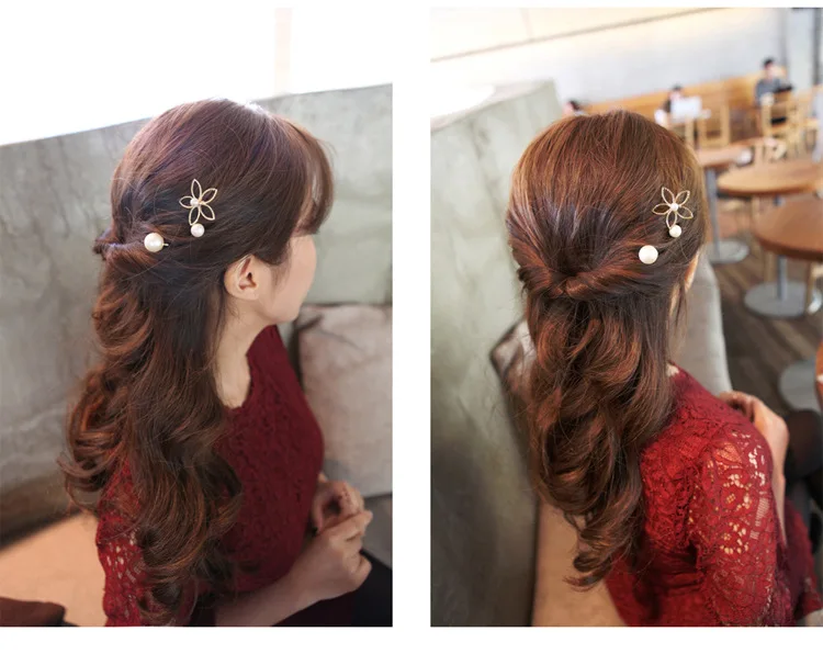 Женская Винтажная заколка для волос с жемчугом модная металлическая мрамором 3