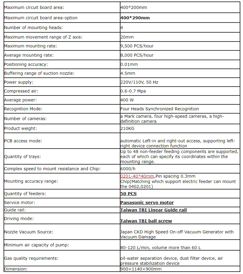 1. Машина для выбора и размещения: 1 комплект 2. Фиксированная поддержка IC: 4 комплекта (четыре M5 * 8, четыре M5 * 16) 3.JUKI сопла: 12 шт. (502*2503*3504*4505*2506*1) 4. Калибровочная всасывающая насадка: 4 шт. 5. Провод питания: 1 шт. 6. Фиксированная стопа: 4 шт. (диаметр 20 мм) 7. Клавиатура и мышь: 1 комплект 8. Калибровка сопла inkpad:1 коробка 9. Смазка: 1 шт. 10. Ключ шасси: 1 шт. 11. ПК: 1 комплект 12,17 дюймовый жидкокристаллический дисплей: 1 комплект Программное обеспечение SMT550 было разработано нами. Программное обеспечение доступно на английском языке. И наше программное обеспечение будет Обновлено, как только появится обновление, продавец отправит новое программное обеспечение в ваш почтовый ящик. Машина SMT550 имеет один год гарантии, пожизненное обслуживание. У нас есть профессиональная команда послепродажного обслуживания. До тех пор, пока возникнет проблема с машиной в течение одного года после покупки, мы отремонтируем ее бесплатно. Если есть необходимость заменить аксессуары, мы отправим их в ваши руки бесплатно. (как правило, мы используем TNT/DHL. 3-5 рабочих дней на руки).
