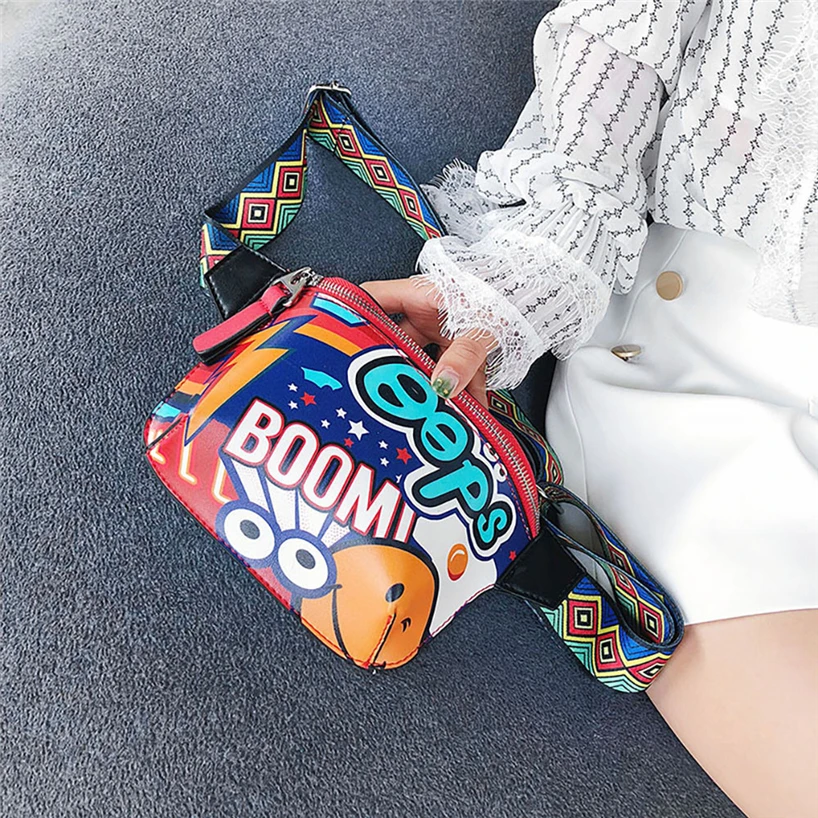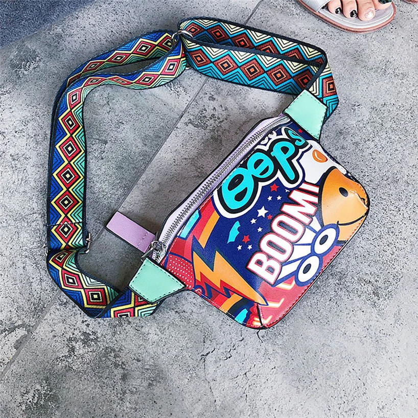 Женская нагрудная сумка через плечо с принтом граффити, широкий плечевой ремень, сумка-мессенджер