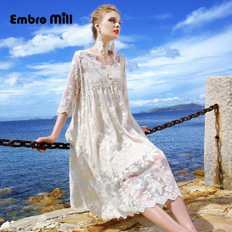 Светло-голубое винтажное бальное платье с вышивкой длинное средневековое
