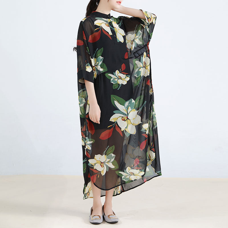 Женское длинное пляжное платье в горошек с v-образным вырезом и эластичной