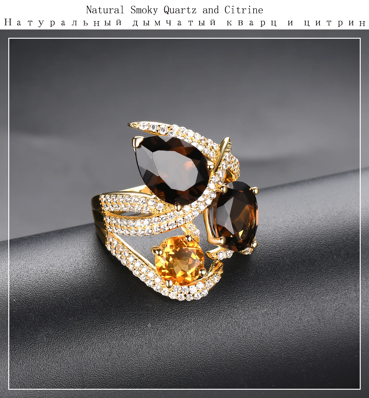 Тип: Кольцо Металл: Стерлинговое Серебро Маркировка: 925 Вес металла: 7,68 г Покрытие: покрытие из настоящего желтого золота Драгоценный камень: дымчатый кварц, цитрин, кубический цирконий Камень Размеры: груша 12x 9/овальным вырезом 10x8 мм, круглый вырез 7,0 мм, круглый вырез 1,3/1,2/1,1/1,0 мм Цвет камня: коричневый, желтый, белый Резка камня: хорошая резка Метод Создания камня: натуральный Общий вес камня: 8,12 тележек Отделка: полированная поверхность Подарочная коробка: в комплекте