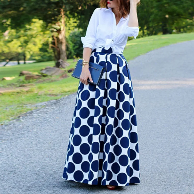 * Описание товара:Женские в горошек вечерние винтажные с высокой талией плиссированные юбки длинные макси