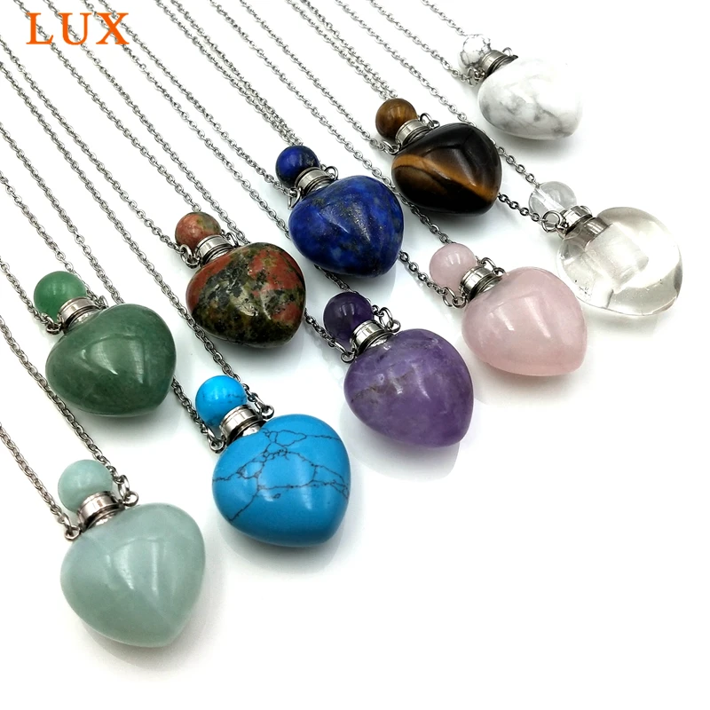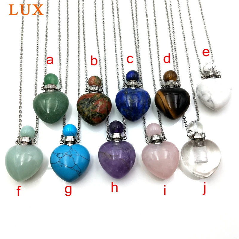 В форме сердца подвеска в виде бутылочки парфюма ожерелье натуральный драгоценный камень кулон кристаллической чакры (кварц Подвеска в виде бутылочки парфюма для женщин ювелирные изделия