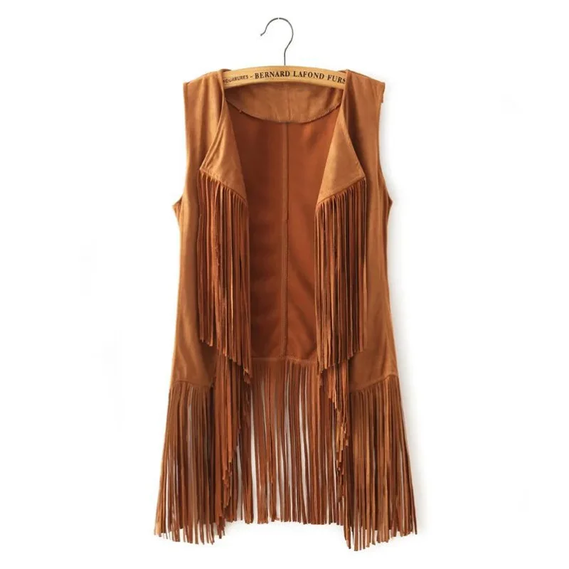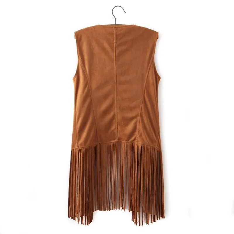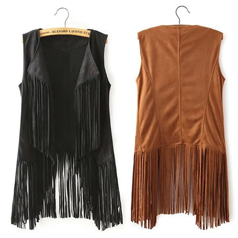* Описание товара:Для женщинНовые женскиеSuedette без рукавов кисточкой бахромой куртка жилет