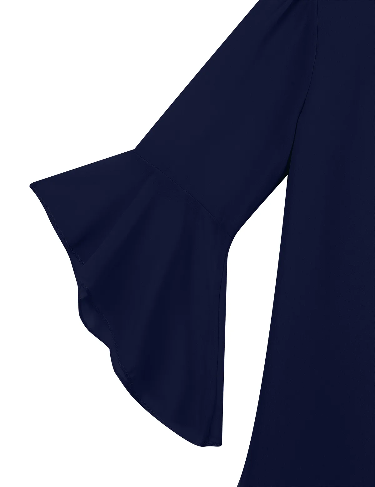 Рукава-колокольчики 3/4, v-образный вырез, вырез сзади с завязками на талии. С подкладкой.