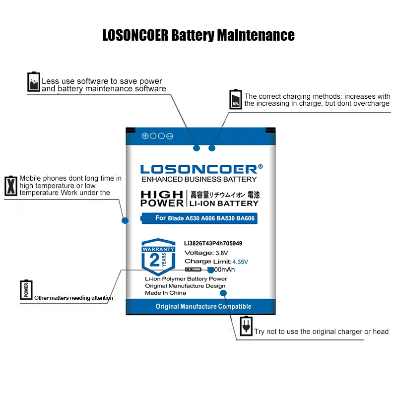 4..Высокая емкость с lonG Время в режиме ожидания.Бренд LOSONCOER battery