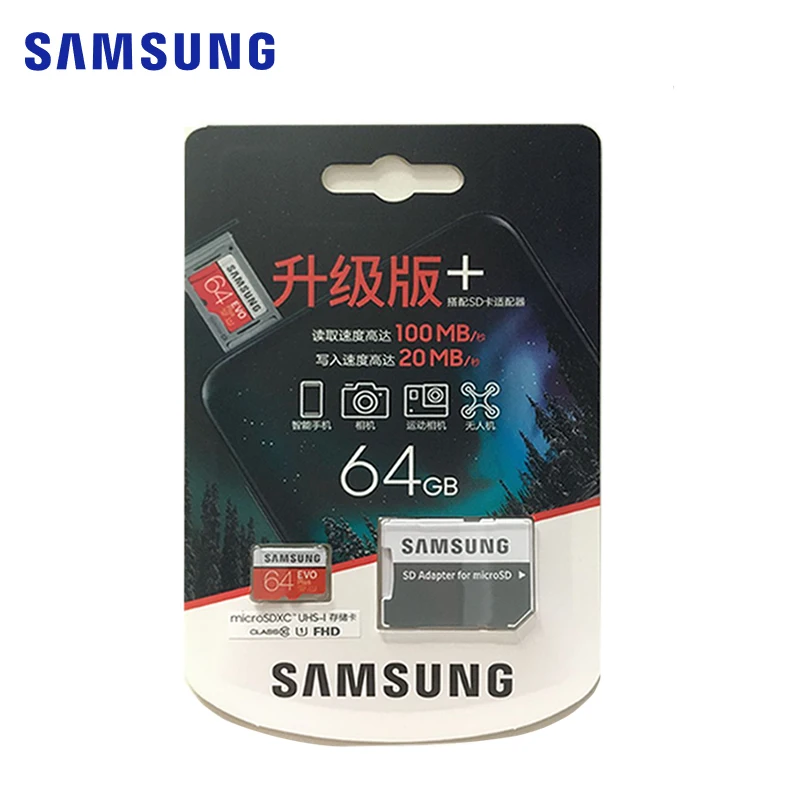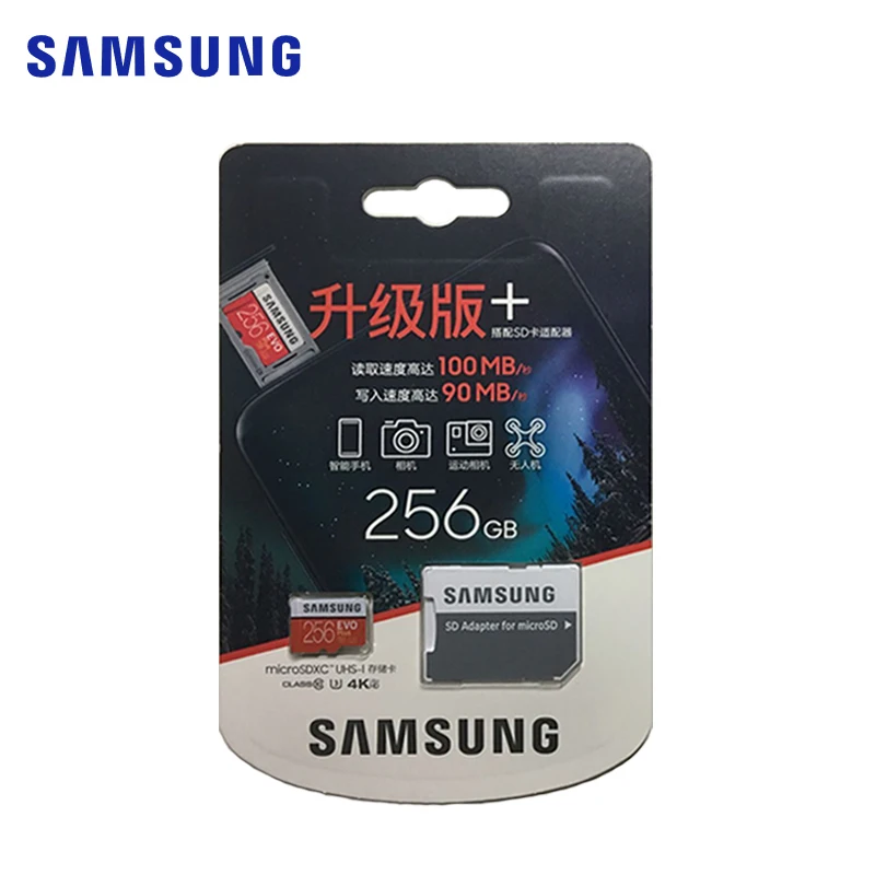 Ёмкость 32 Гб 64 Гб 128 ГБ 256 ГБ 512 UHS-I CLASS10 Стандартный внесение изменений в 3,0 Размеры Размер упаковки (Д х Ш х В): 15x11x1,0 мм (Ш x В x Г) Вес 0,25 г Напряжение 2,7 ~ 3,6 V Совместимость смартфон/планшет/автомобильный черный ящик Рабочая температура-25 °C (-13 °F) ~ 85 °C (185 °F) Производительность Seq Read/скорость записи до 95 / 20 (МБ/с) ** Сертификация FCC, аддитивного цветового пространства, сертификат Европейского соответствия, сертификат независимого Испытательного и сертификационного BSMI, VCCI Гарантия Пожизненная гарантия Примечание ** Чтение/скорость записи на основе SAMSUNG внутренних тестах; производительность может быть ниже в зависимости от хост-устройства. Скорость класса UHS Скорость: класс 1 / UHS Скорость: класс 3 Скорость класс: класс 10 Скорость: 32 Гб, класс 10, U1 -MicroSDHC 64 ГБ, класс 10, U1 -MicroSDXC 128 Гб класс 10 U3 -MicroSDXC 256 Гб класс 10 U3 -MicroSDXC О емкости: 32 Гб = приблизительно 28 ГБ-30 Гб 64 ГБ = приблизительно 58 ГБ-60 Гб 128 ГБ = примерно 115 ГБ ~ 118 ГБ 256 ГБ = примерно 230 ГБ ~ 236 ГБ Комплектация: Samsung EVO Plus Micro SD с розничной упаковкой * 1 С более частого использования смартфонов и планшетных компьютеров для мультимедиа записи и воспроизведения, есть растущий спрос на скорости чтения и записи специальные карты памяти. Premier серии Слот для карт памяти внедряет новейшие внесение изменений в 3,0 Спецификация UHS-I (сверхвысокая Скорость 1, В соответствии с SD 2,0 Class 10 Скорость), поставляется в комплекте с начального уровня цена для потребителей, которые хотят выделенная карта для своего смартфона или планшета ПК.