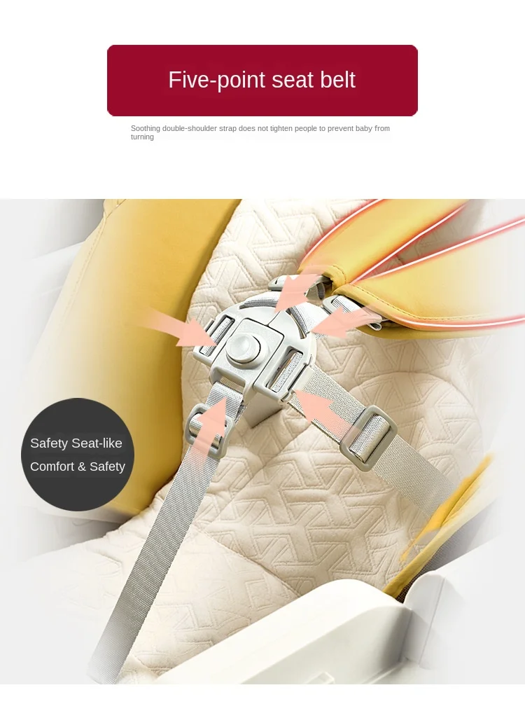 Описание изделия: 1. Обеденный стул находится в режиме яичной скорлупы, которая защищает позвоночник ребенка от нормального развития. 2. Опора обеденного стула изготовлена из авиационного алюминиевого сплава, который прочнее и легче. 3. Ткань сиденья изготовлена из искусственной кожи, которая является водонепроницаемой и легко моется. 4. Хранение одним щелчком мыши, быстрое складывание и отсутствие места. 5. Спинка обеденного стула может регулироваться в три этапа, и она может сидеть или лежать. 6. 7-скорость регулировки высоты сиденья, подходит для различных высот. 7. 5-точечный ремень безопасности фиксируется, что делает ребенка безопаснее.