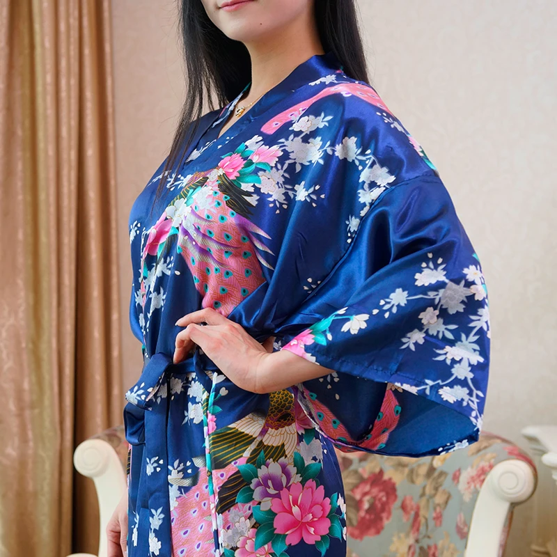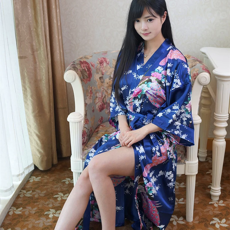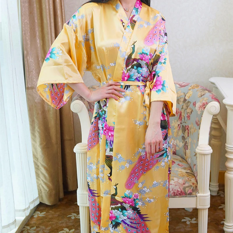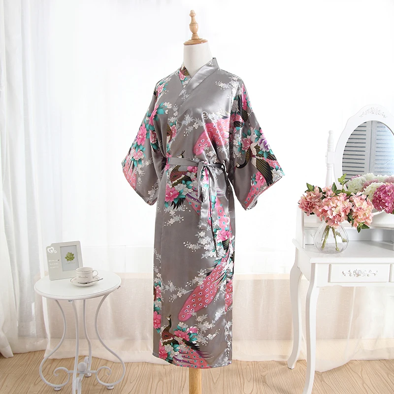 * Описание товара: женское повседневное свободное кимоно; стильная атласная длинная ночная рубашка; одежда для сна