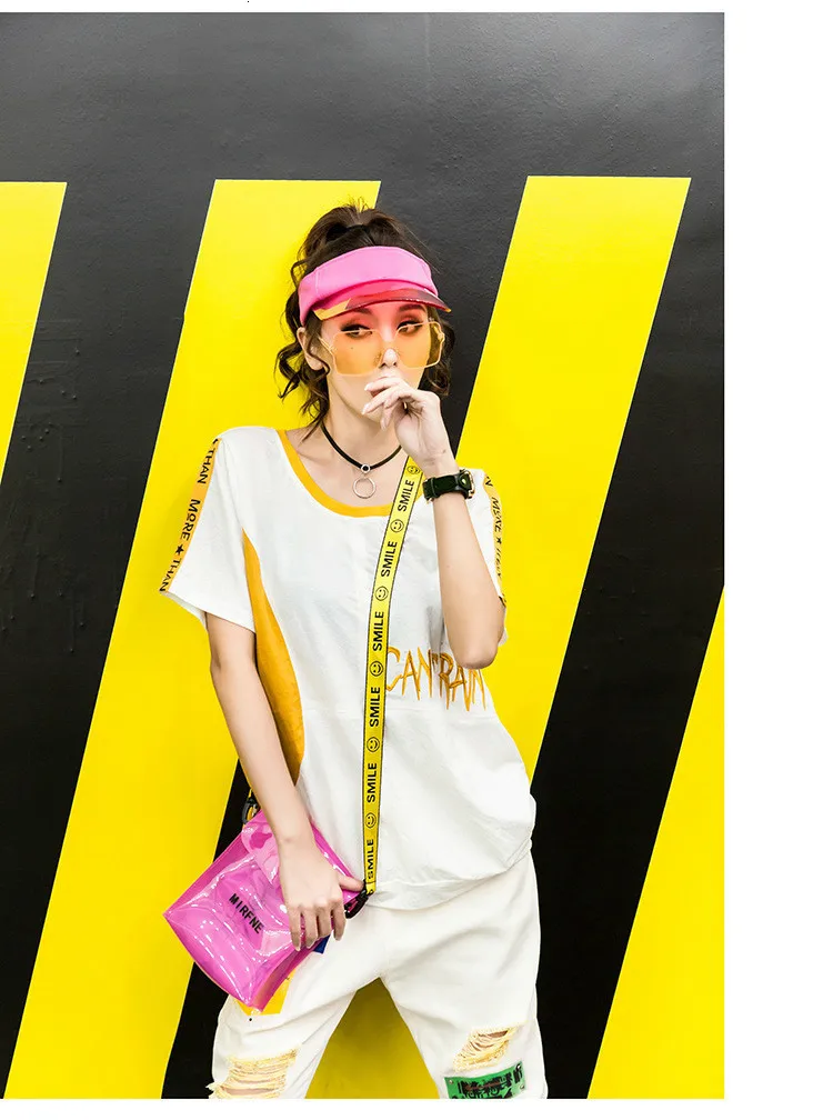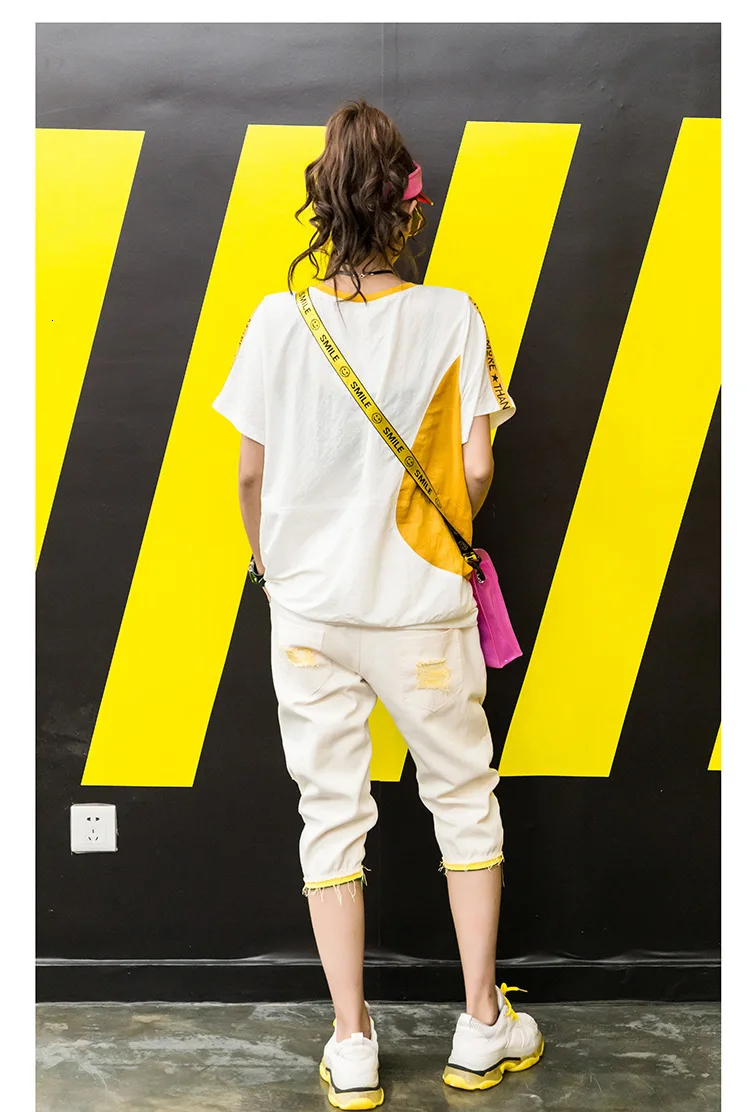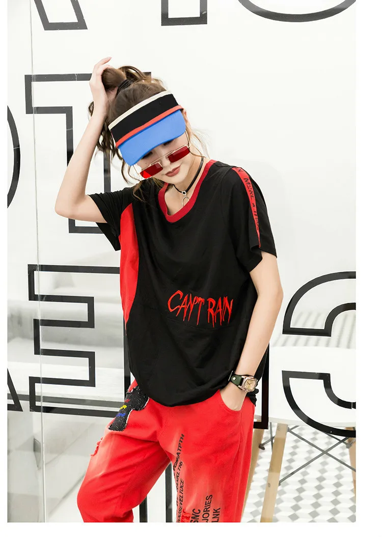Корейская модная повседневная футболка с вышивкой в стиле пэчворк