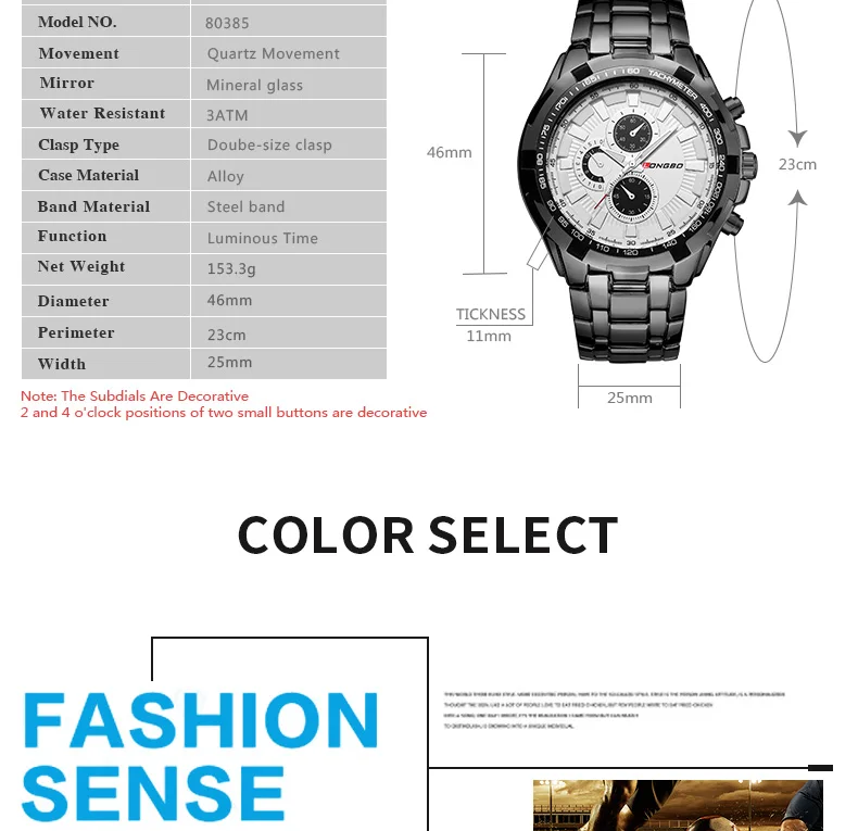 Технические характеристики: Диаметр циферблата: 46 мм Чехол Толщина: 11 мм Длина Часов: 23 см Ширина ремешка: 25 мм Часовой механизм: кварцевый механизм Материал зеркала: минеральное стекло Чехол Материал: сплав Материал ремешка: Сталь Водонепроницаемость: 3 атм/3 бара (идеально подходит для любого вида бизнеса, повседневной, домашней деятельности или ежедневного использования.) Примечание: Пожалуйста, не нажимайте кнопки в воде или носите эти часы для длительного использования под водой, например, для дайвинга и т. д. Описание: 100% новый бренд и высокое качество; Топ бренд класса люкс Высокое качество дизайн циферблата; 3 АТМ/30 м Водонепроницаемость (водонепроницаемость, не использовать часы под водой, не поддерживает горячую воду); Высокое качество; Посылка включает в себя: Наручные часы LONGBO, 1 шт.