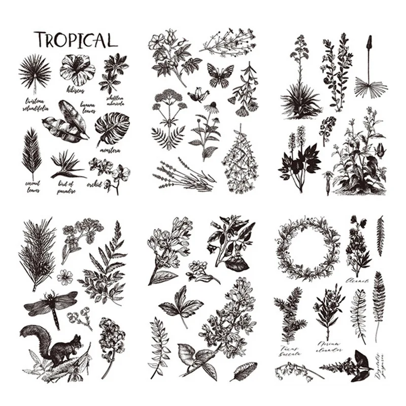 Винтажные Цветочные Марки, листья, новый прозрачный штамп, резиновая Прозрачная силиконовая печать для DIY скрапбукинга, фотоальбом, декоративные поделки